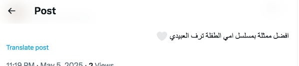 وفي تعليق آخر: "#ترف_العبيدي بطلة #مسلسل_أمي خطفت الأنظار بموهبة تُحاكي الكبار وتتجاوزهم أحياناً أداءها نقي وعفوي ومؤثر ما شاء الله تبارك الله ملامح نجومية تُبشّر بمستقبل لامع في الدراما بإذن الله".