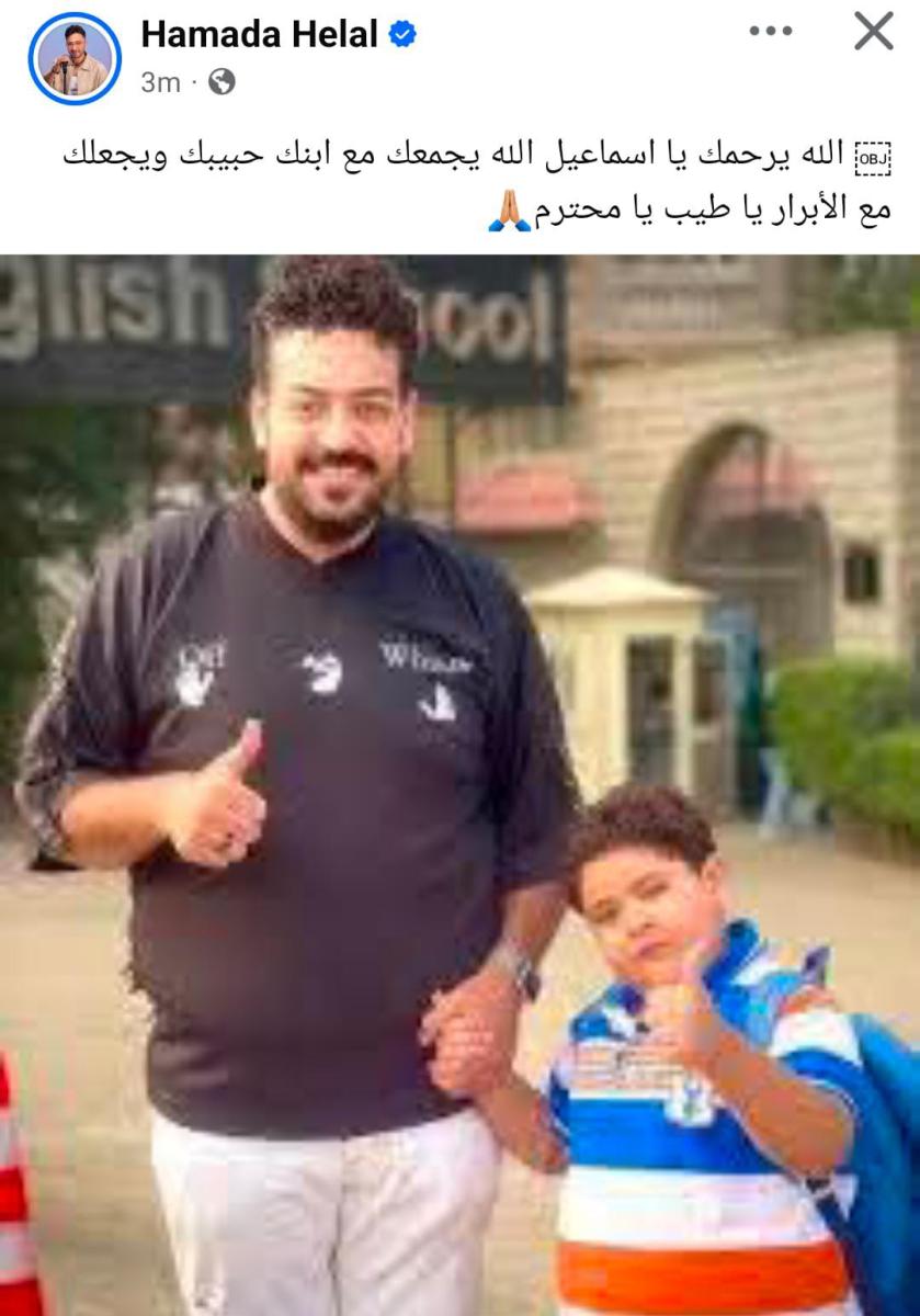 كما كتب حسن شاكوش: "إنا لله وإنا إليه راجعون… ربنا يرحمك يا حبيبي ويصبر أهلك ويجعلك من أهل الجنة يا رب".