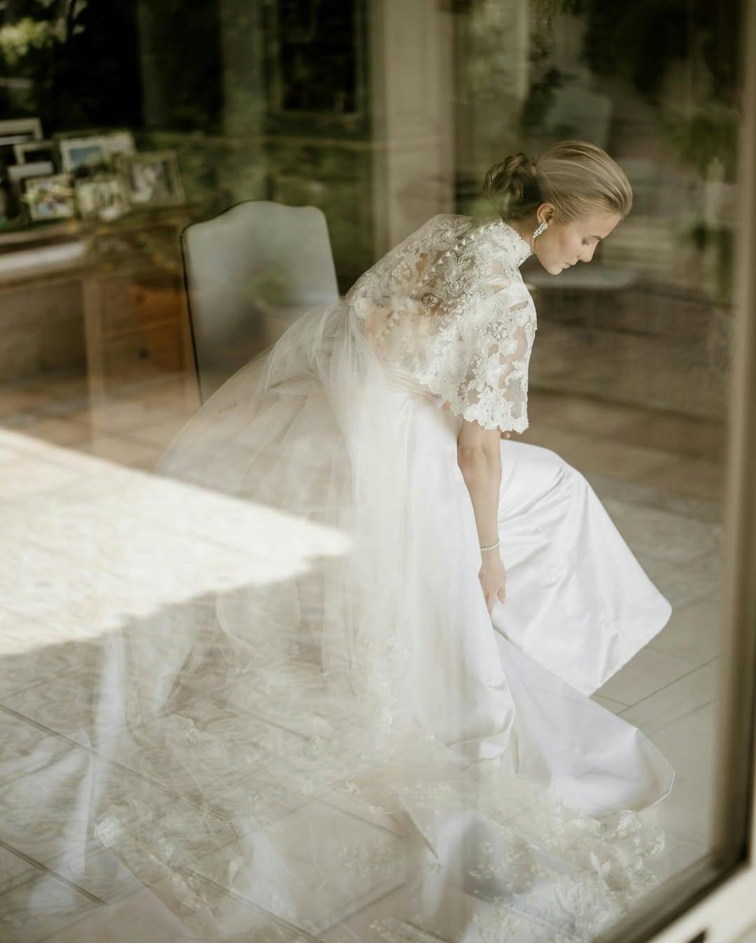 وتألقت الأميرة عائشة بإطلالة خطفت الأنظار، حيث ارتدت فستان زفاف من توقيع المصممة البريطانية فيليبا ليبلاي، والتي اختارت تصميماً يجمع بين البساطة الملكية والتفاصيل الراقية، ما عكس ذوق الأميرة الرفيع.