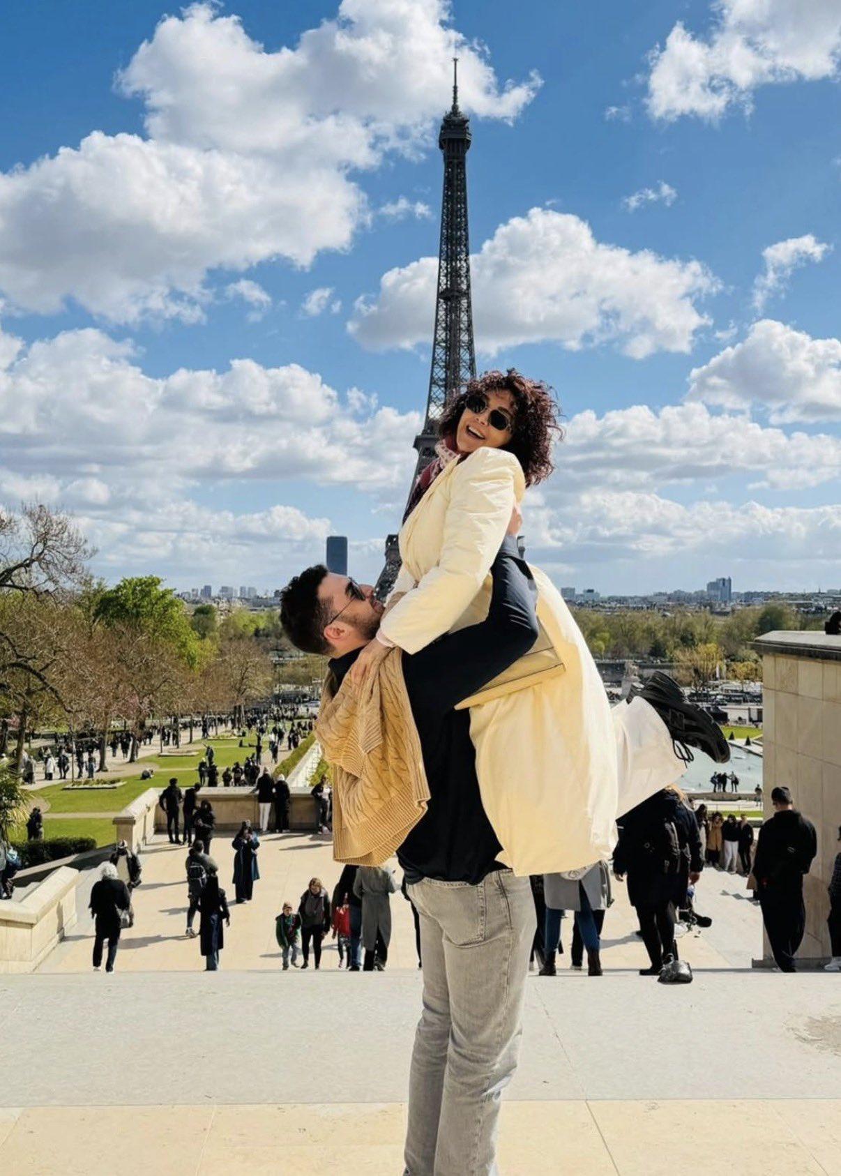 في صور عفوية من باريس، ظهرت الممثلة كاريس بشار مع ابنها مجد الجواد أمام برج Eiffel Tower، حيث التُقطت لحظات بسيطة جمعت بينهما خلال تواجدهما في العاصمة الفرنسية، وسط أجواء هادئة وبعيدة عن التكلف، عكست علاقة قريبة وطبيعية بين الأم وابنها.