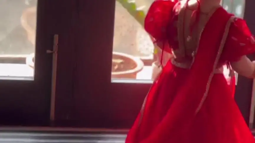 وفي الصور الجديدة يظهر أيضاً حب سونام للموضة حيث كانت ترتدي تصميم تقليدي باللونين الأحمر والأبيض وتحمل بيدها باقة من زهور اللوتس مع الحفاظ على تسريحة شعر بسيطة.