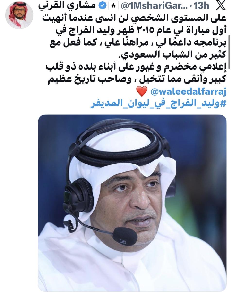 ردود الفعل كانت واسعة، وعدد من الإعلاميين علّقوا على الحلقة، مؤكدين أن الفراج اسم راسخ في الإعلام الرياضي، وأن حضوره وتأثيره لم يكونا مرحلة عابرة، بل مسيرة طويلة صنعت مشهداً كاملاً. وأشاروا إلى أن خلف هذا التاريخ يقف إنسان بسيط يحفظ العِشرة ويقدّر من حوله، معتبرين أن نجاحه لم يغيّره بل زاده نضجاً وثباتاً. كما استعاد بعضهم مواقف دعم وقف فيها إلى جانب شباب في بداياتهم، مؤكدين أنه إعلامي مخضرم غيور على بلده وصاحب بصمة واضحة في المشهد الرياضي السعودي.