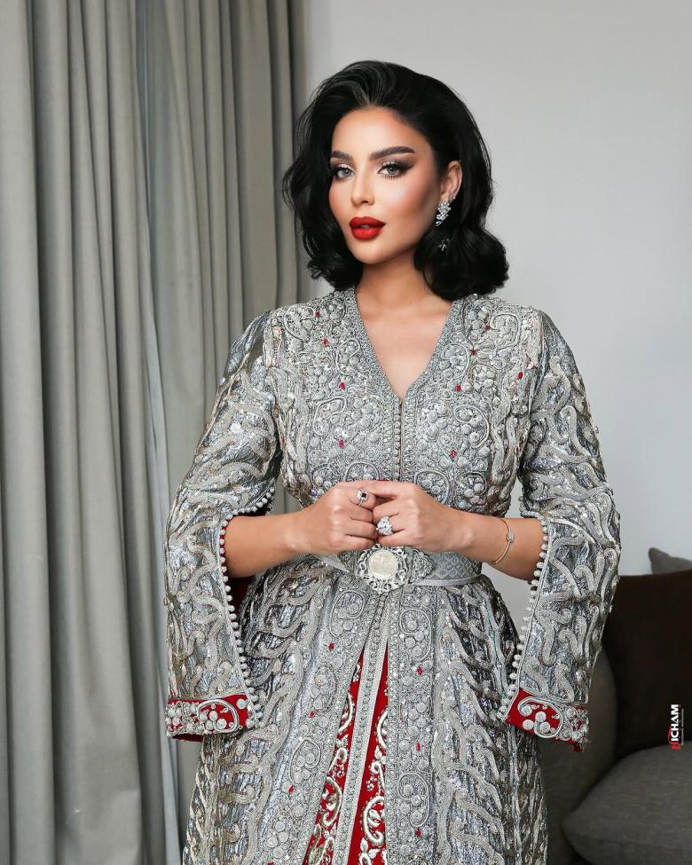 ابتسام بطمة بالقفطان الفضي والأحمر